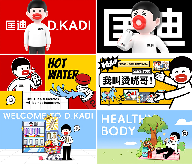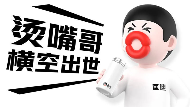 而產(chǎn)品就是我們最大的免費(fèi)媒體,當(dāng)顧客手里拿著杯子的時(shí)候,他得知道它是匡迪的。所以我們首先要讓匡迪的杯子符號化。我們將燙嘴哥應(yīng)用于匡迪的產(chǎn)品。