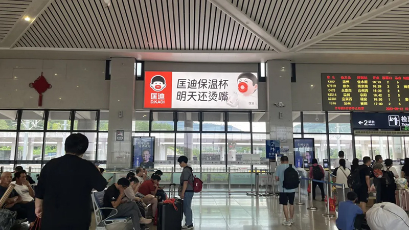 呂總也是當(dāng)場拍板,馬上運(yùn)用。第一時(shí)間開心地在大本營永康高鐵站投了一塊廣告牌,展示我們新的品牌形象。