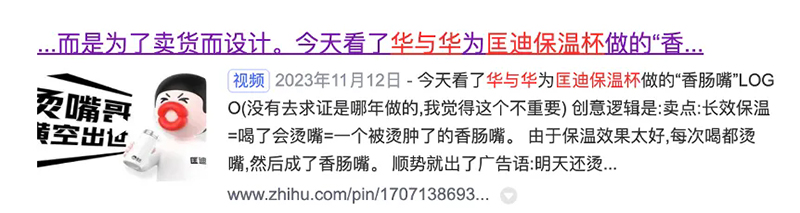 這句話一方面運(yùn)用了人類集體的經(jīng)驗(yàn)和潛意識,另一方面,把原本負(fù)面的“燙嘴”,變成了正向的宣傳,來證明匡迪保溫杯的品質(zhì),傳播我們的品牌名。
