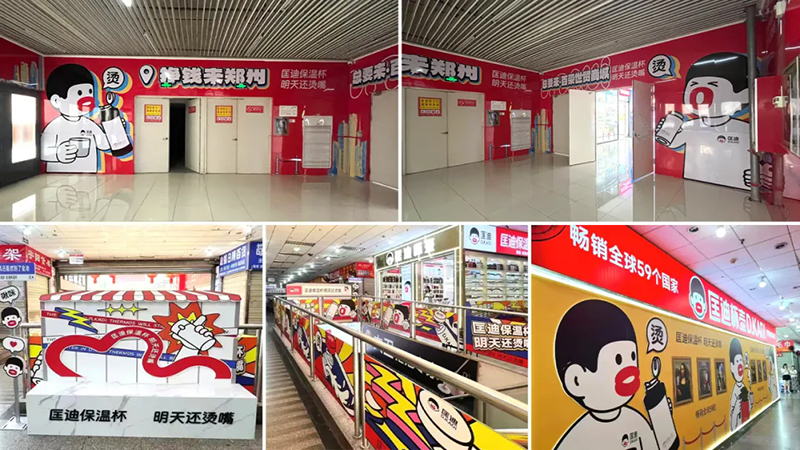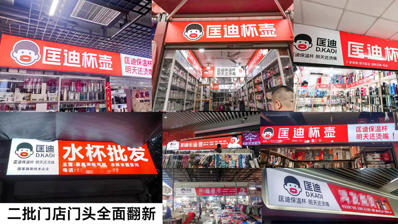 超級符號上門頭,讓它們在批發(fā)市場中成為最亮眼、最具吸引力的成交陣地,讓客戶的客戶也賺錢。當(dāng)你走進(jìn)批發(fā)市場,最先撲面而來的就是那醒目的匡迪保溫杯門頭。
