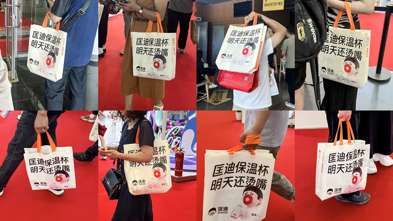 不僅如此,我們還讓所有參展者成為我們的宣傳大使。我們設(shè)計(jì)了一款展會專用的挎包,作為核心道具發(fā)送給參展者,走到哪兒都能看到背著匡迪挎包的人群。甚至有些人把它當(dāng)成了日常挎包。