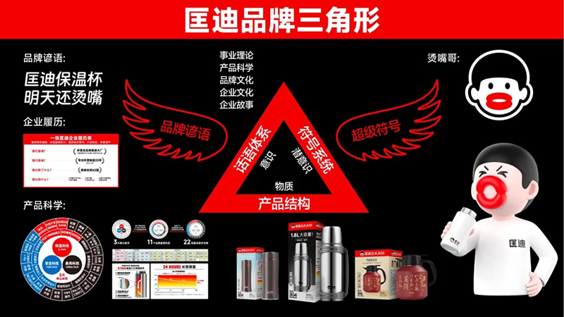 今天,“匡迪”這個(gè)名字、匡迪的杯子、匡迪燙嘴哥和“匡迪保溫杯,明天還燙嘴”無法再被分開,因?yàn)槿A與華出手,它們就成為了一個(gè)整體,這個(gè)包括了產(chǎn)品、話語和符號的品牌就成型了。