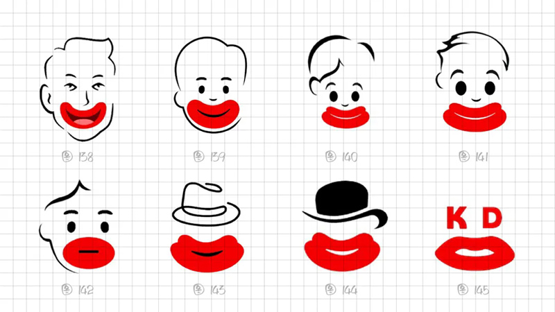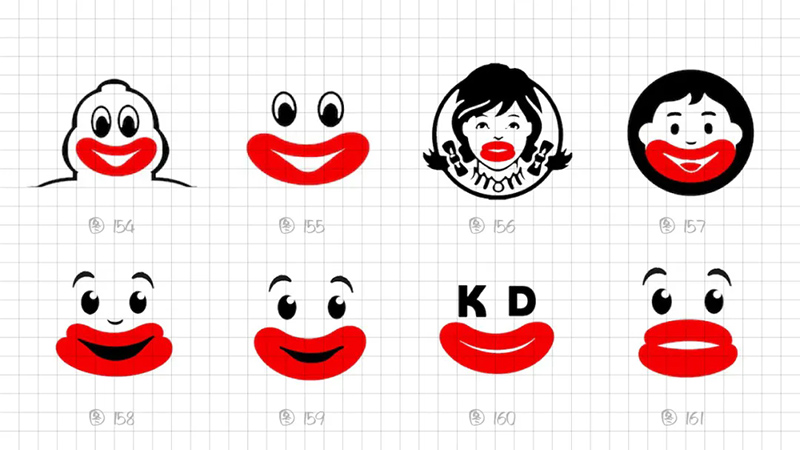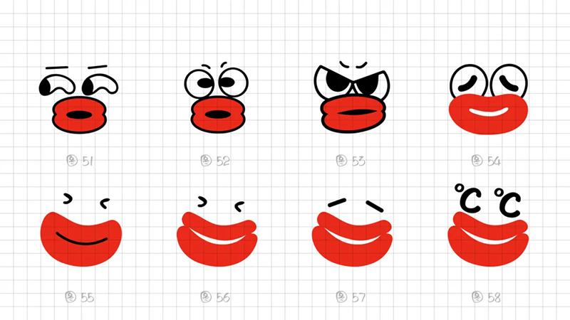 From a recognition perspective, we ultimately focus on using a 2-piece structure, 3 geometric ellipses, and absolutely symmetrical graphics to highly summarize the performance characteristics of the hot mouth. Adjust the graphics in detail to make the lower lip thicker and wider.